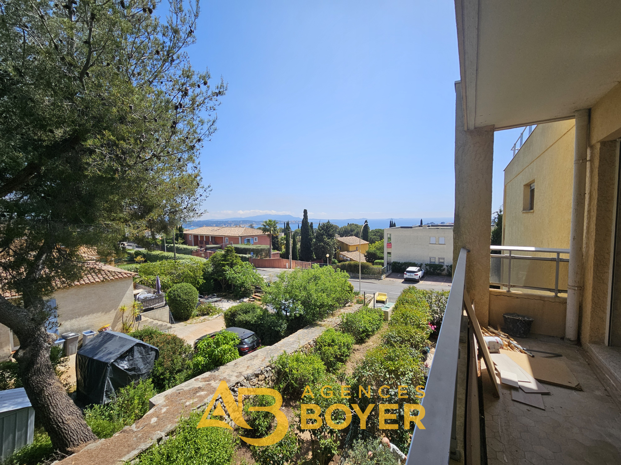 Quartier du Bois Maurin, sur les hauteurs de Bandol. Dans une résidence entretenue et au calme, agréable Type 2 de 53m² au 2ème étage (sans ascenseur) en cours de travaux : (peintures, électricité, menuiseries, cuisine sanitaires) comprenant : un hall d'entrée, un séjour donnant sur un balcon de 6m² exposé sud-est avec joli aperçu mer, une chambre de 14m² avec placards, une cuisine indépendante aménagée, une salle d'eau avec WC. Une cave. Place de parking privative. Disponible le 15/05/2026.